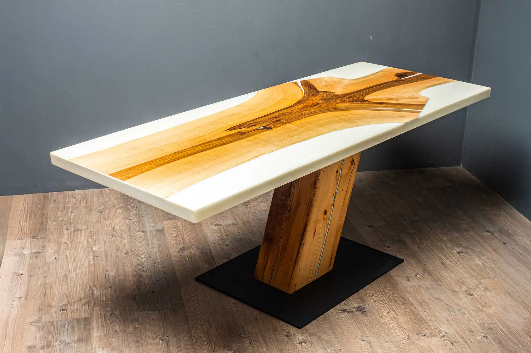 Egyedi fa–epoxy bútorok, ahol a természet és a design találkozik.